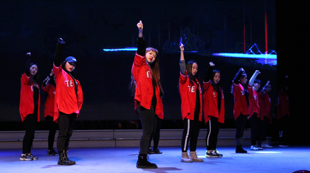 本次汇演分“勿忘初心”和“砥砺前行”两个篇章。晚会伊始,DBstreet舞团的演员们身着迷彩服在迷雾中慢慢浮现,带来开场舞《Pick me》。动感酷炫的音乐配合元气满满的舞蹈,瞬间点燃现场气氛。