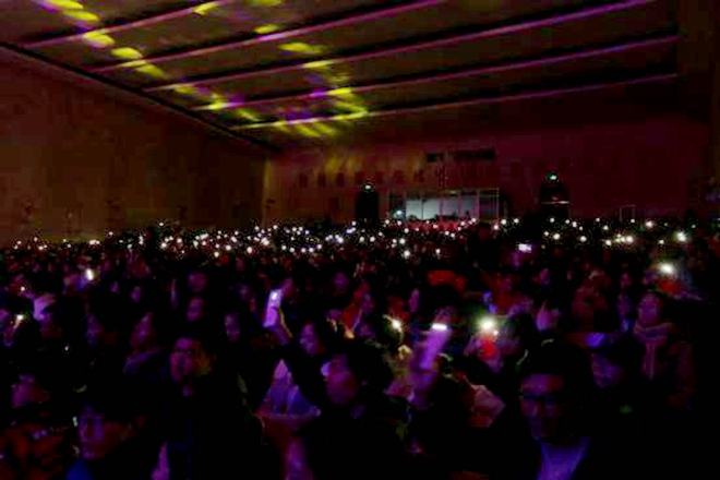 演出继续,精彩不断。由火柴乐队带来的歌曲《塑料袋》和《光辉岁月》将本次演出推向高潮,劲爆的鼓点,精湛的唱功征服了台下观众们。大家纷纷打开手电筒高举手机为其加油欢呼,远远望去宛如一团璀璨夺目的星云,在黑夜里熠熠生辉。