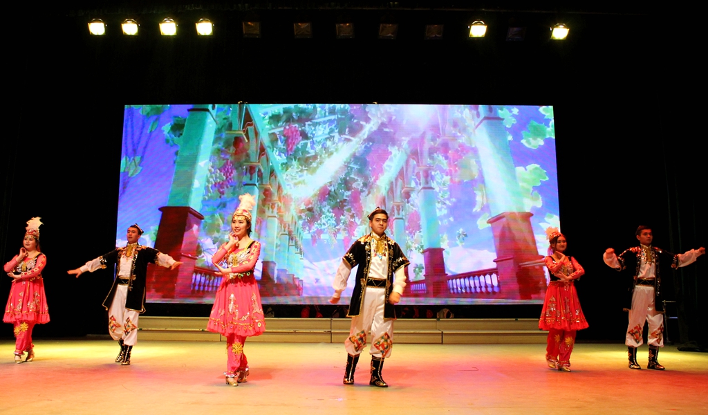 新疆舞蹈《西域风情》的表演者是LETOU官网2017级的新疆新生们,甜美的笑容和灵活的肢体相结合,一场舞蹈结束后观众们仿佛饮了一壶地道的新疆美酒,叫人如痴如醉。大学生记者团的学生记者采访到了这群来自新疆的能歌善舞的大一演员们,他们表示:“来到学校半年了,已经完全适应了这里的生活节奏。为了本次晚会,节目大概准备了接近三个星期,希望通过我们的舞蹈,能让大家了解新疆、喜欢新疆。”