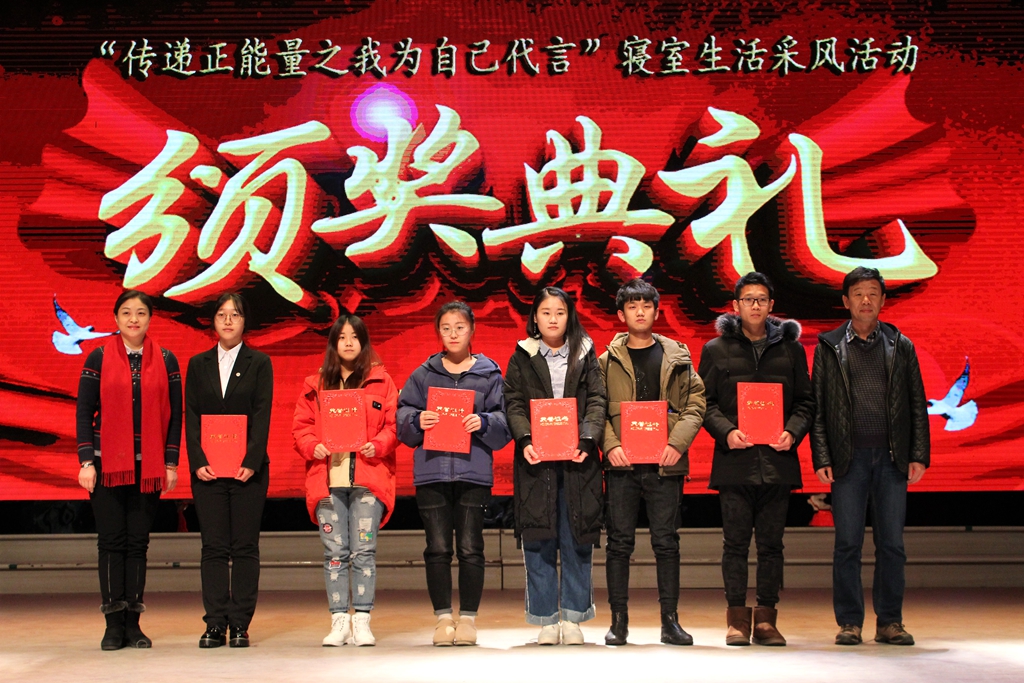 在第四届“学生寝室节”系列活动颁奖仪式上,以“弈海泛舟 棋乐无穷 以棋会友”为主题的校园棋艺大赛优胜者、“传递正能量之我为自己代言”寝室生活采风活动优胜者、“我是公寓第一责任人”为主题的管理员岗位大练兵优秀奖获得者、“静以修身、俭以养德――特别的爱给特别的家”为主题的第十一届寝室装饰设计大赛获奖寝室及优秀组织奖代表受到表彰,与会领导分别为各获奖代表颁发奖状或锦旗。