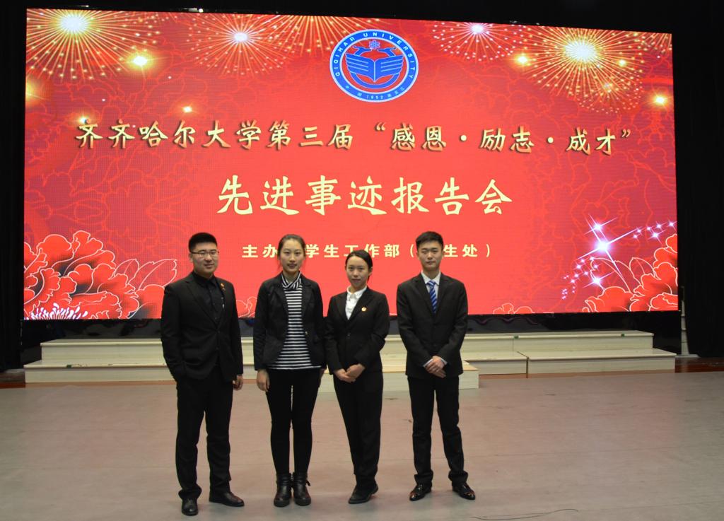 报告团成员轻工与纺织学院孙陵、研究生部刘丽娜、理学院肖利丹、建筑与土木工程学院聂宝琦共四名同学与大家分享了他们的成长经历。
