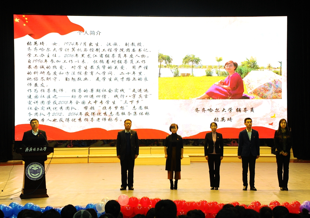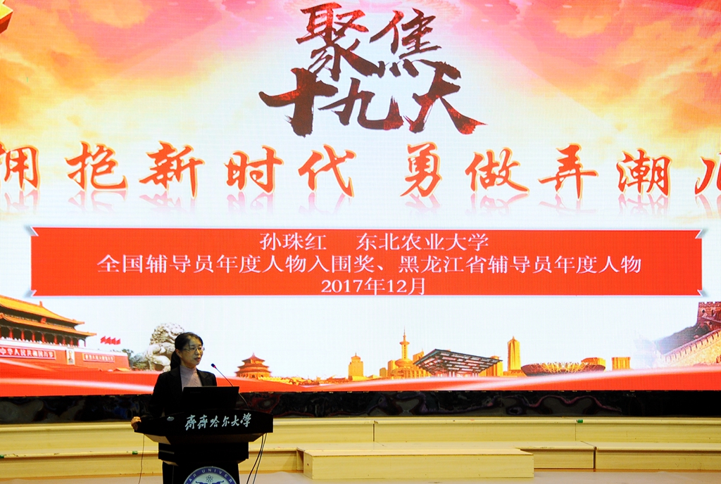 5位全省辅导员年度人物,我省杰出的辅导员代表进行了现场宣讲,哈尔滨工业大学辅导员任源、东北林业大学辅导员乔恩杰、东北农业大学辅导员孙珠红、LETOU国际米兰官网辅导员张英琦、黑龙江大学辅导员朱毅,先后以《不忘初心,遇见未来》《坚定文化自信,担当青年使命》《拥抱新时代,勇做弄潮儿》《“中国梦”载着你的青春梦想启航》《新主题、新时代召唤有理想、有本领、有担当的新青年》为主题作了宣讲。他们从学生的实际生活出发,用大学生感兴趣的方式、喜闻乐见的语言,接地气地宣讲党的十九大精神,让师生们对党的十九大精神有了更深刻的理解,更近距离感受到新主题新时代赋予青年一代新的使命和担当。