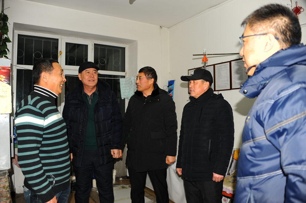 2017年12月31日晚,校长马立群、副校长王刚分别来到中区东门门卫室、11号教学楼门卫室以及学生宿舍楼门卫室、逸夫楼泵房、东区锅炉房等处,看望慰问值班人员,向大家送去新年祝福。