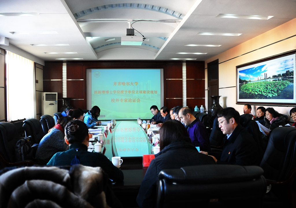 2017年12月27日下午,学校在办公楼504会议室召开拟新增博士学位授予单位立项建设规划校外专家论证会。邀请由哈尔滨师范大学博士生导师郭长虹教授任组长,东北石油大学博士生导师王尊策教授、黑龙江大学博士生导师秦川丽教授、哈尔滨商业大学博士生导师刘颖教授、东北林业大学博士生导师张智教授等专家组成的校外专家组来LETOU官网,就学校拟新增博士学位授予单位立项建设规划进行论证。