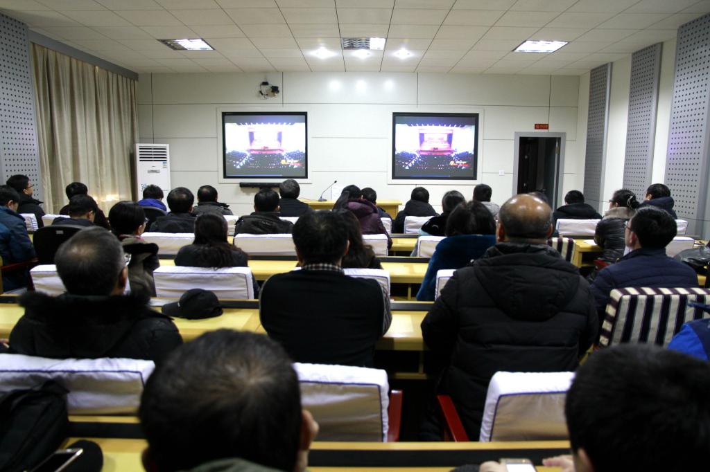为及时学习传达会议有关精神,学校组织全体处级干部在西区主楼六楼远程视频会议室集中收听收看了开幕会盛况。