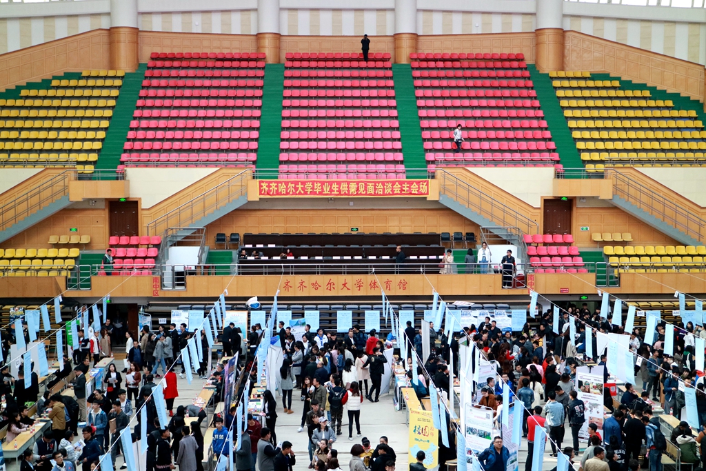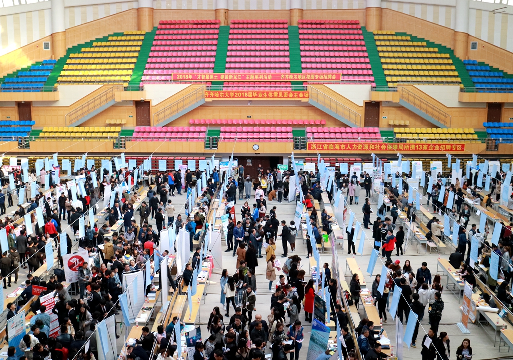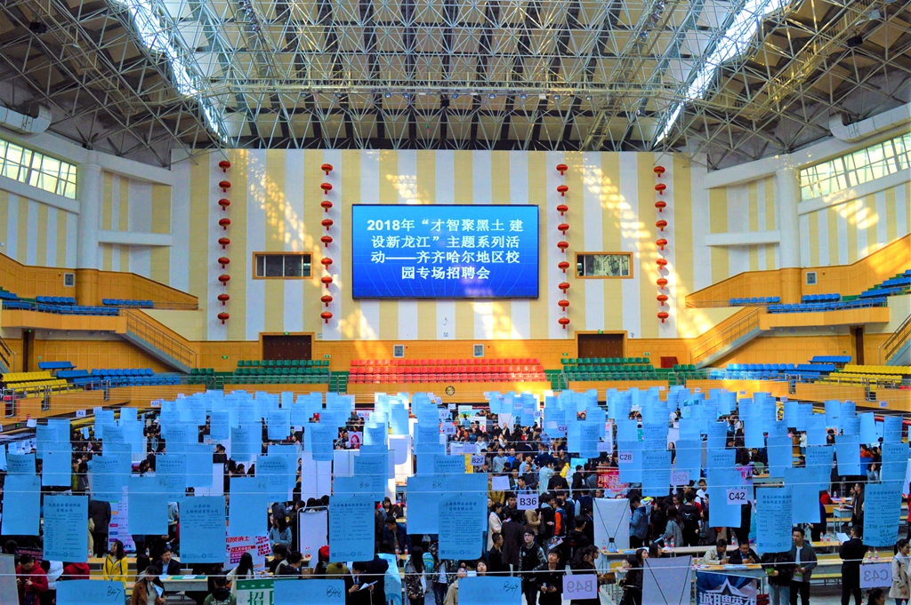 3月31日,2018年“才智聚黑土 建设新龙江”主题系列活动:齐齐哈尔地区校园专场招聘会暨LETOU官网2018届毕业生春季供需见面会在学校西区体育馆成功举行。