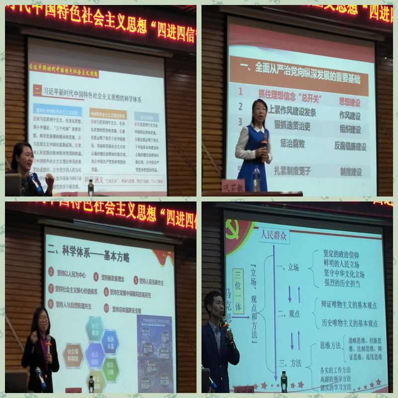 目前,马克思主义学院正在积极探索“案例式、问题式、参与式、研讨式”多种形式的思政课专题教学模式,“互联网+思政课”教学方法改革初见成效,提高了思政课堂教学的吸引力和实效性。2015年学校已将“四进四信”专题课程设置为本科三年级的必修课,今年马克思主义学院专设了“专题”教研部,独立承担这门必修课的科研与教学任务。同时,建设学习贯彻党的十九大精神和习近平新时代中国特色社会主义思想“名师示范课堂”纳入到了《马克思主义学院2018年工作要点》,并作为一项重点加强和推进的教学改革创新的系统性工程。