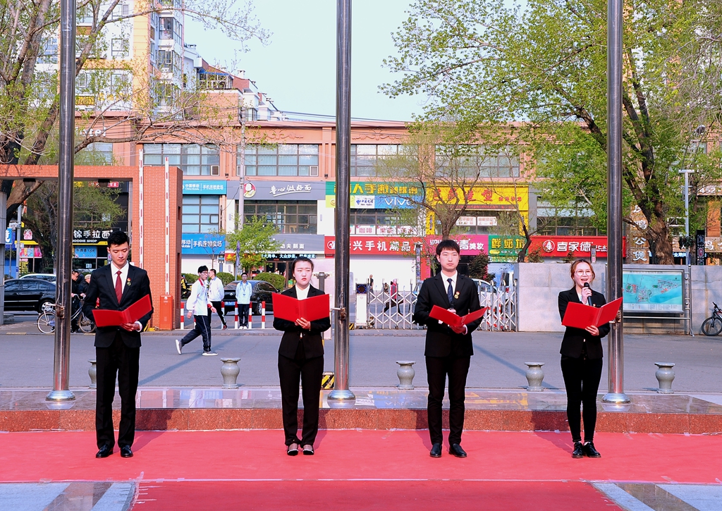 本次升旗仪式在校团学骨干日新班同学们带来的配乐诗朗诵《唱响五四之歌》中圆满结束。