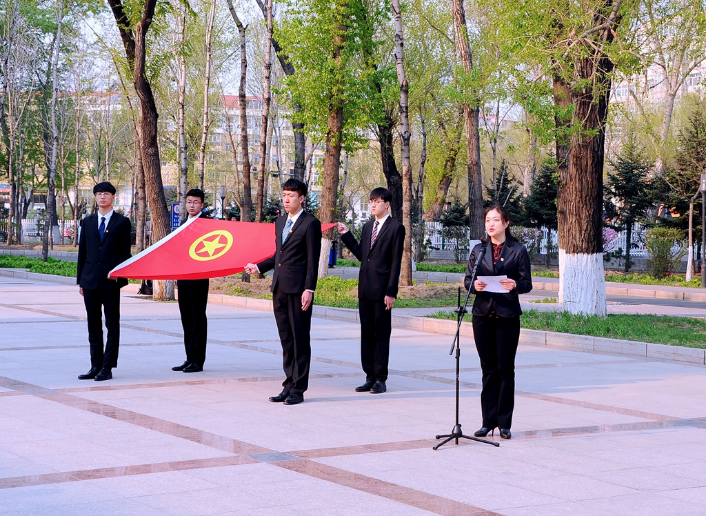 校党委副书记齐宏伟在升旗仪式上讲话。她代表学校党委,向全校广大青年致以节日的问候,向长期以来关心和支持学校青年成长的各位领导和教职员工表示衷心的感谢,并向全校团员青年提出了三点期望:一要坚定信念,找准人生航向。青年学生要牢固树立“永远跟党走”的坚定信念,把个人的奋斗与国家的前途、民族的振兴、学校的发展紧密联系在一起,将青春梦融入中国梦;要秉承着“养正毓德,精存自生”的校训,践行“致知、致用、致远”的校风,不忘初心,牢记使命,争做“有理想、有追求、有担当、有作为、有品质、有修养”的新时代大学生;二要勤学修德,锤炼高尚品格。要始终沿着向上、向善的人生轨道成长,自觉地树立和践行社会主义核心价值观,自觉弘扬以爱国主义为核心的民族精神和以改革创新为核心的时代精神,自觉加强社会公德、职业道德、个人品德建设,在伟大而富有希望的新时代,创造出更加无愧于时代的光辉业绩。三要勇于担当,书写不朽青春。青年学生要勇于担当这个时代赋予的历史责任,励志勤学,刻苦磨练,不断提高理论水平和思想境界,不断优化知识结构,积极踊跃地投身到大众创业、万众创新的时代洪流之中,做到学思践悟、知行合一,在不懈努力中彰显人生价值,在激情奋斗中绽放青春光芒。