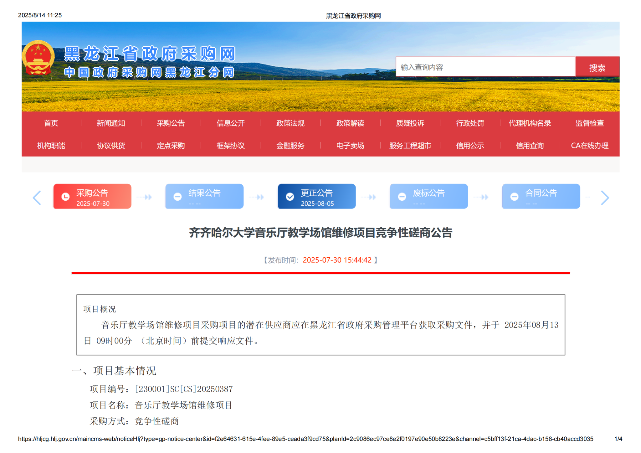 上一条:LETOU国际米兰官网音乐厅教学场馆维修项目采购更正公告(第一次)(转自黑龙江省政府采购网)