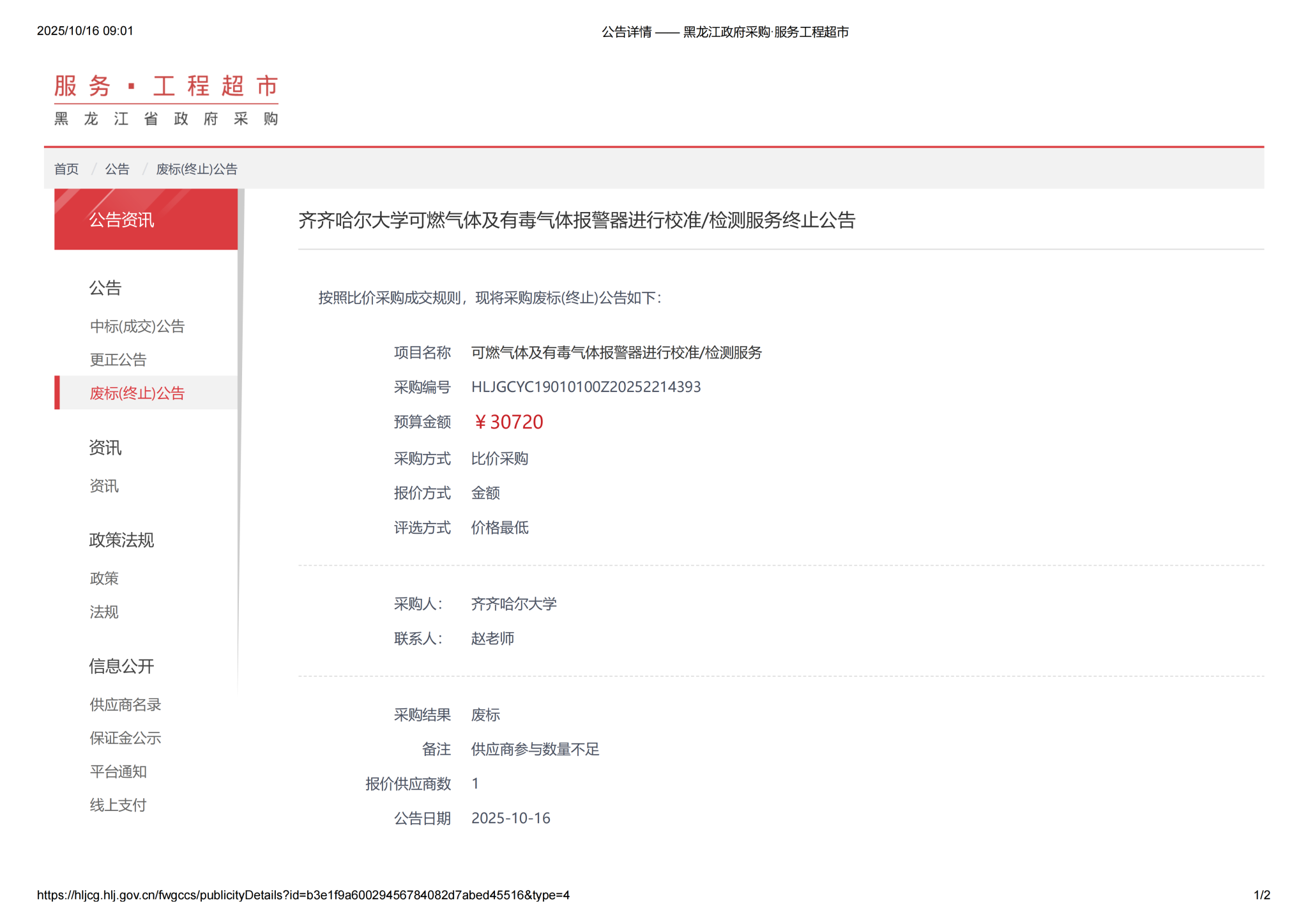 上一条:LETOU国际米兰官网可燃气体及有毒气体报警器进行校准检测服务(第2次)比价采购公告(转自黑龙江省政府采购网)