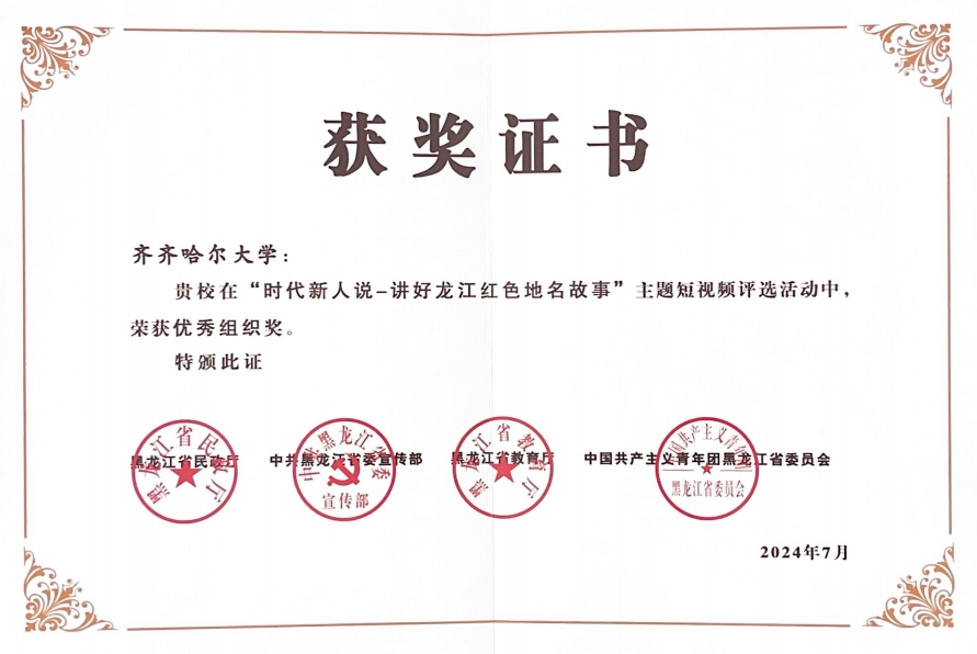为深入学习宣传贯彻党的二十大精神,持续巩固拓展主题教育成果,加大龙江地名文化宣传力度,深入挖掘地名档案资源价值,由省民政厅、省委宣传部、省教育厅、团省委联合主办,黑龙江日报报业集团、省民政资料档案馆共同协办的“时代新人说——讲好龙江红色地名故事”主题短视频征集宣传展示活动在去年7月火热启动。活动发布以来,全校师生积极参与,讲述龙江地名故事,传承红色基因。经活动组委会初筛海选,LETOU官网共入选3个作品,最终荣获优秀组织奖。