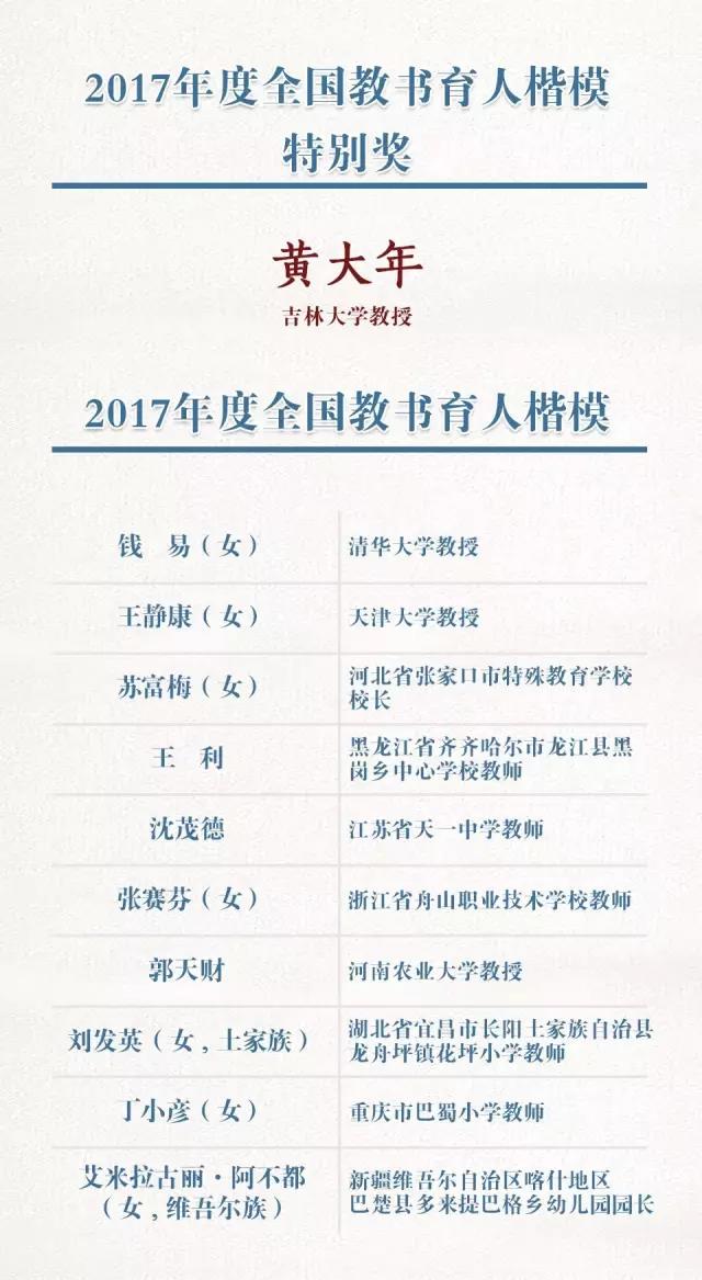 9月1日上午,教育部召开第三场教育金秋系列发布会。会上,教育部教师司司长王定华公布了2017年全国教书育人楷模名单。经过各省推荐、媒体展示、公众投票、组委会推选,最终选出10+1名2017年全国教书育人楷模。