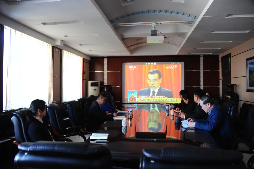 校党委理论学习中心组在机关楼504会议室集中收看了人大开幕式,并就《政府工作报告》学习心得做了深入交流与讨论。