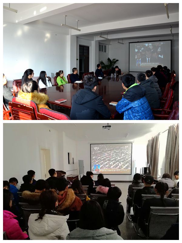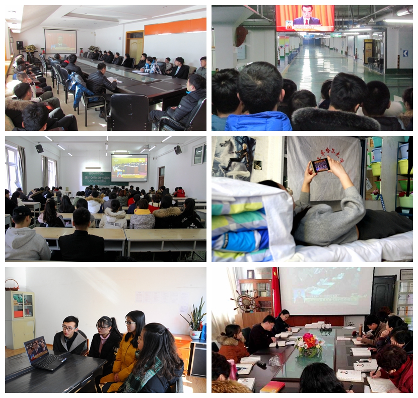 校党委高度重视两会精神的贯彻学习宣传工作,宣传统战部于3月3日向各党委、直属党支部发出了《关于收听收看十三届全国人大一次会议开幕式的通知》,各级党组织积极响应,通过电脑网络视频直播的方式集中同步收看了十三届全国人大开幕式,全校掀起关注两会实况学习两会精神的热潮。