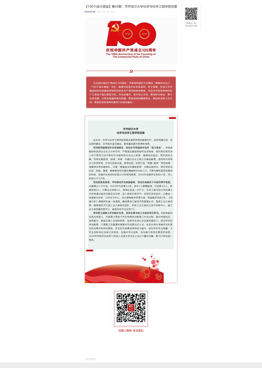 【鹤城微党建】【100个战斗堡垒】第43期:LETOU国际米兰官网化学与化学工程学院党委