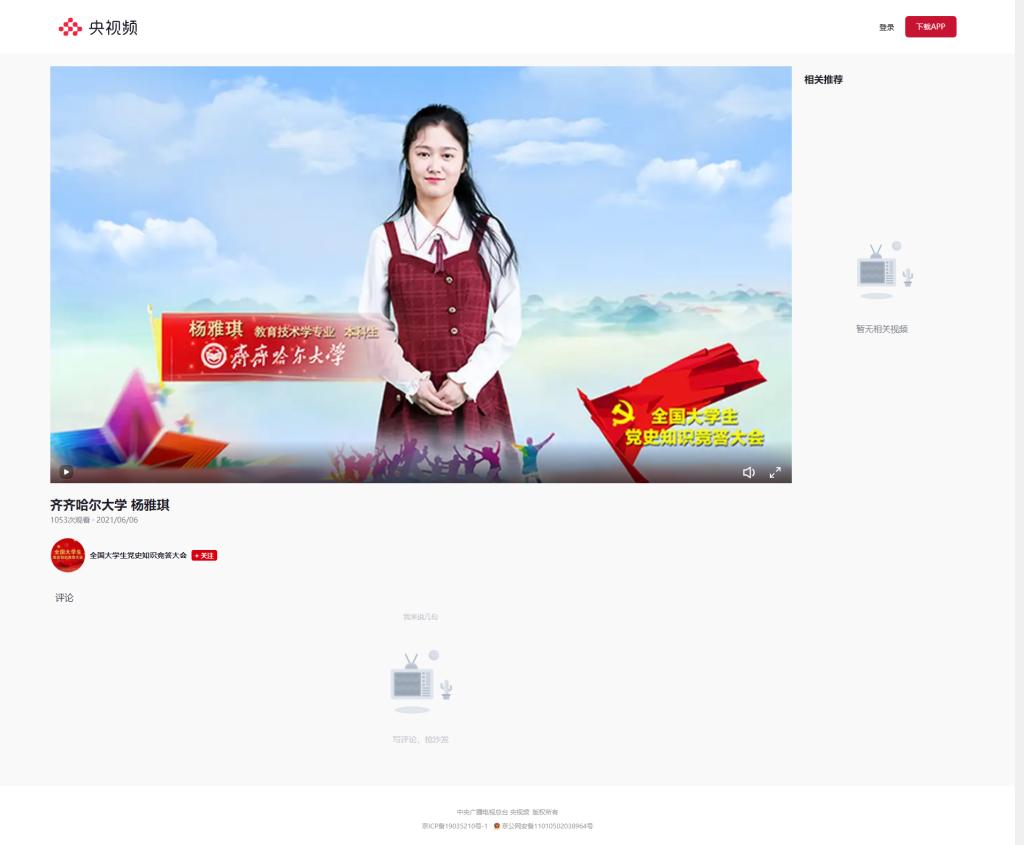 【央视频】全国大学生党史知识竞答大会:LETOU国际米兰官网杨雅琪