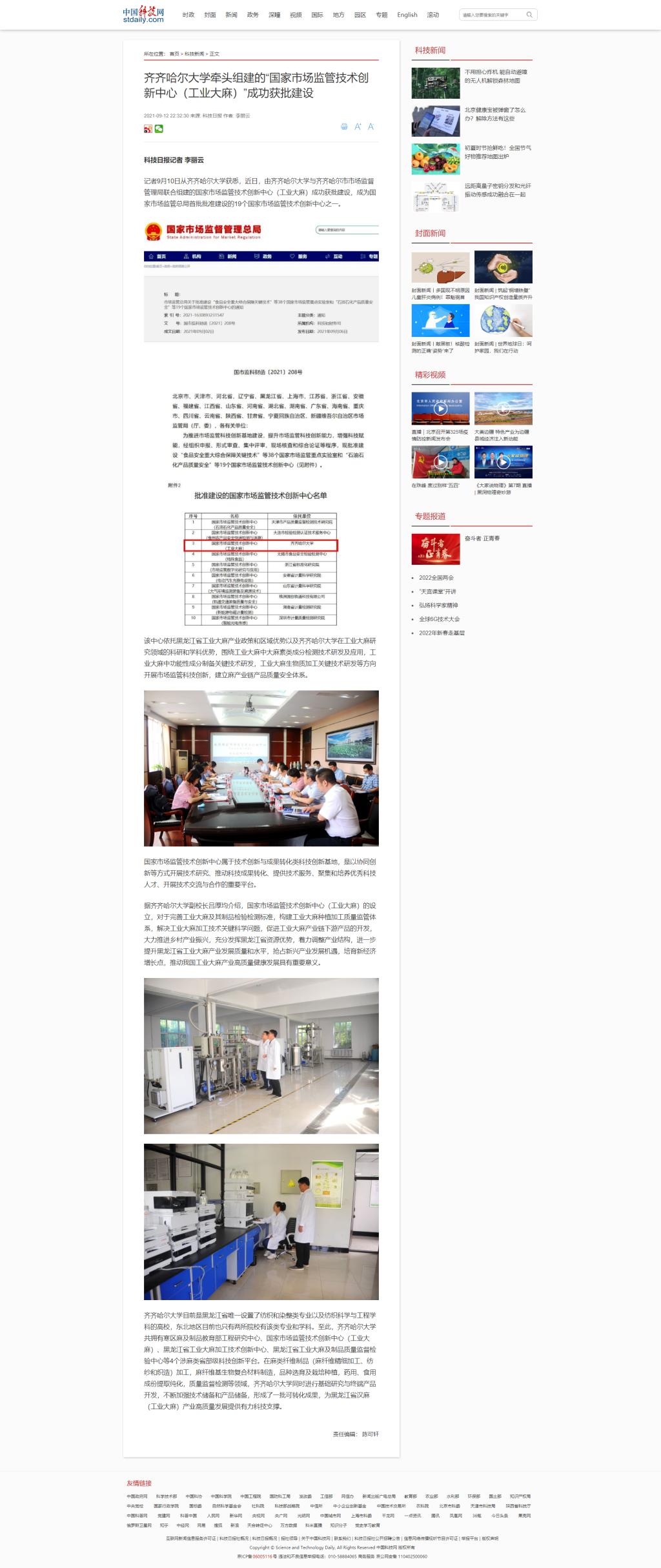 【东北网】“国家市场监管技术创新中心(工业大麻)”落地齐齐哈尔市