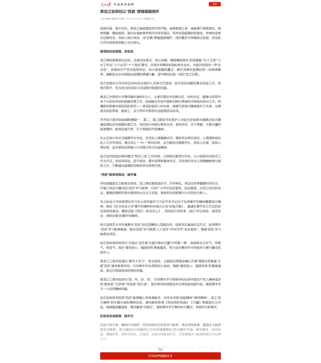 【人民日报客户端】黑龙江省高校以“四真”厚植爱国情怀