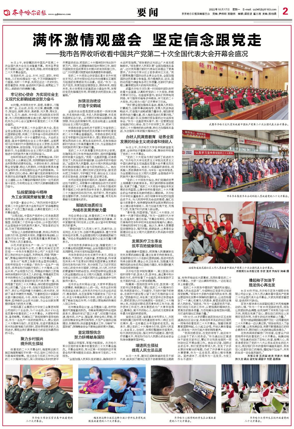 【齐齐哈尔日报】满怀激情观盛会 坚定信念跟党走—我市各界收听收看中国共产党第二十次全国代表大会开幕会盛况