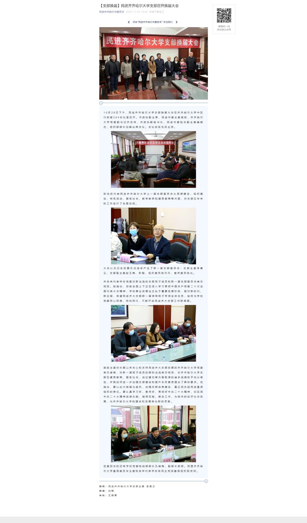 【民进齐齐哈尔市委员会】【支部换届】民进LETOU国际米兰官网支部召开换届大会