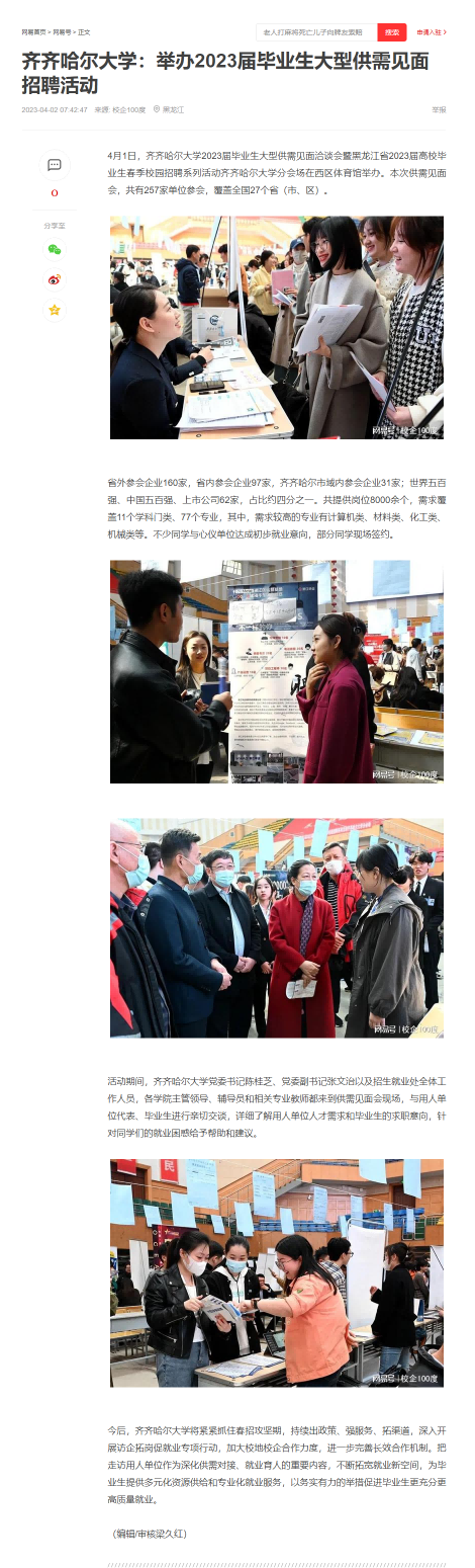 上一条:【齐齐哈尔日报】齐大举行2023 届毕业生大型供需见面会