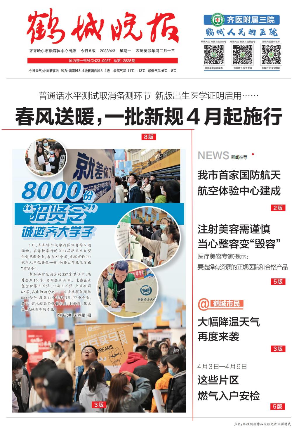 下一条:【齐齐哈尔日报】齐大举行2023 届毕业生大型供需见面会