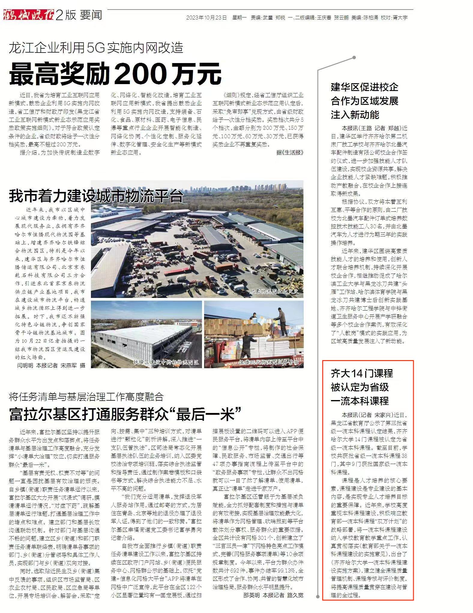 【鹤城晚报】齐大14门课程被认定为省级一流本科课程