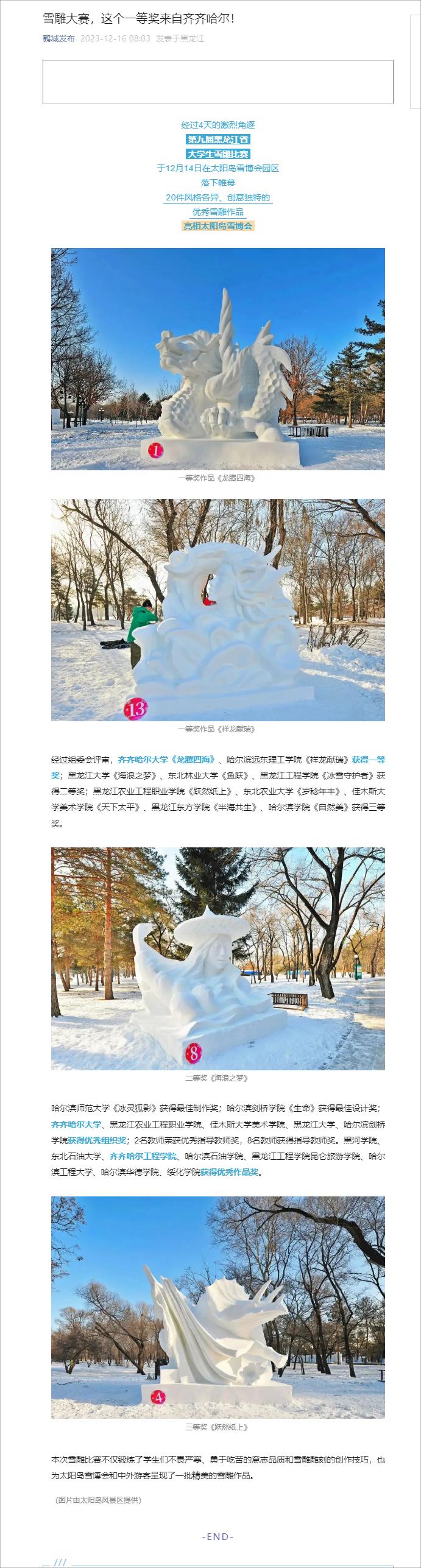 【黑龙江新闻网】第九届黑龙江省大学生雪雕比赛落幕