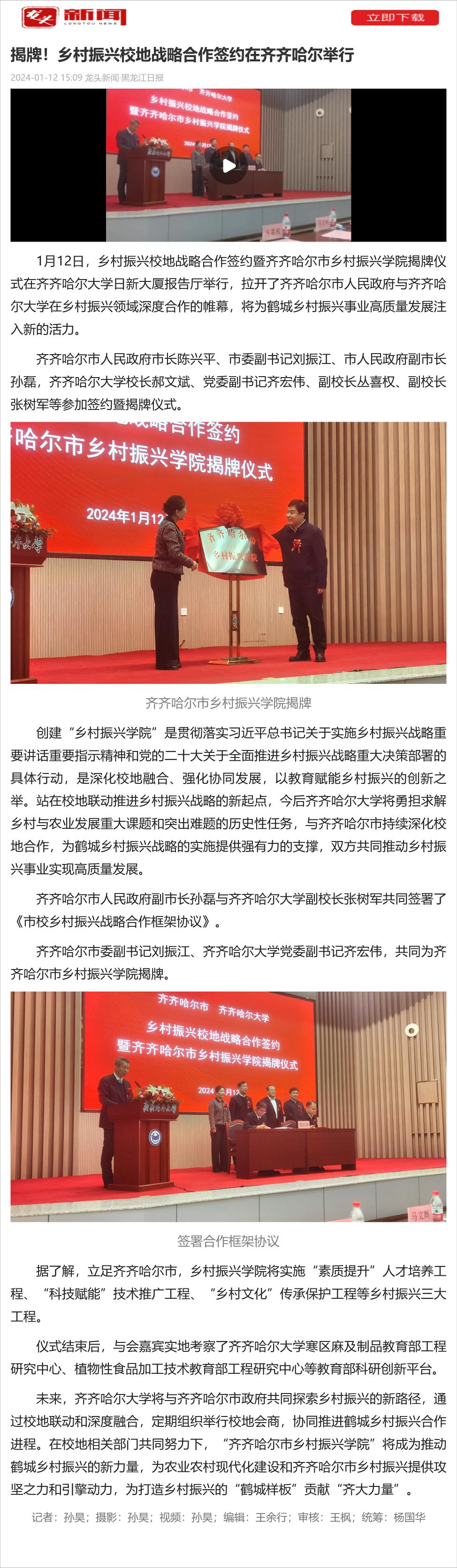 上一条:【黑龙江新闻网】乡村振兴校地战略合作签约仪式举行