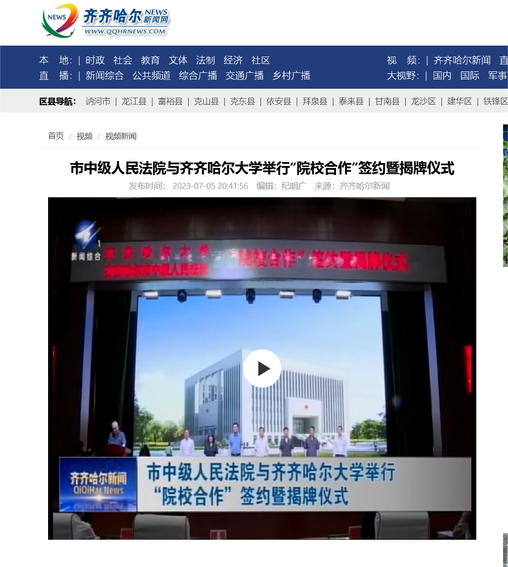 【齐齐哈尔新闻网】市中级人民法院与LETOU国际米兰官网举行“院校合作”签约暨揭牌仪式