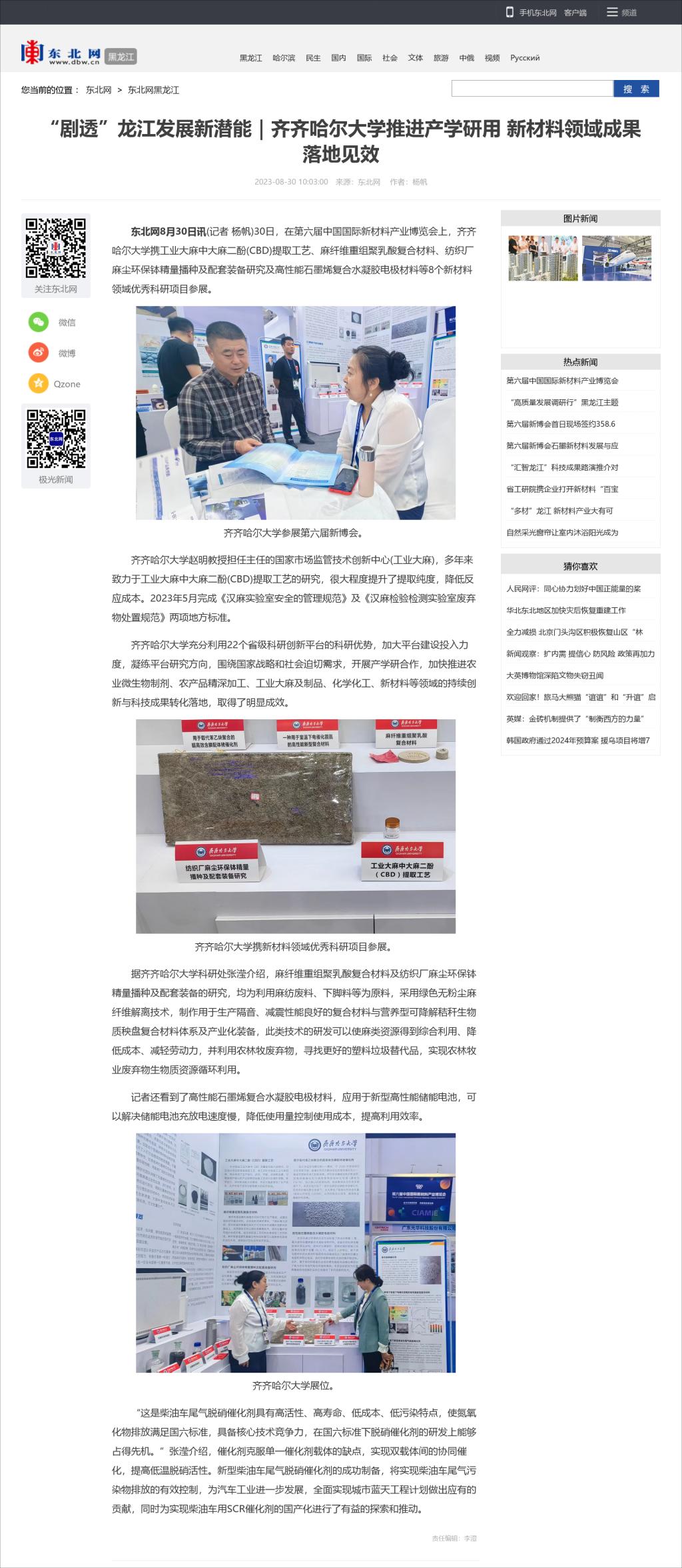 【东北网】“剧透”龙江发展新潜能|LETOU国际米兰官网推进产学研用 新材料领域成果落地见效