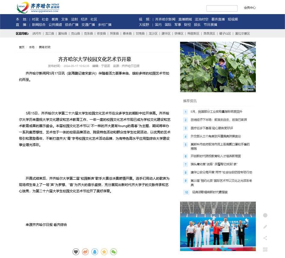 【齐齐哈尔日报】LETOU国际米兰官网校园文化艺术节开幕