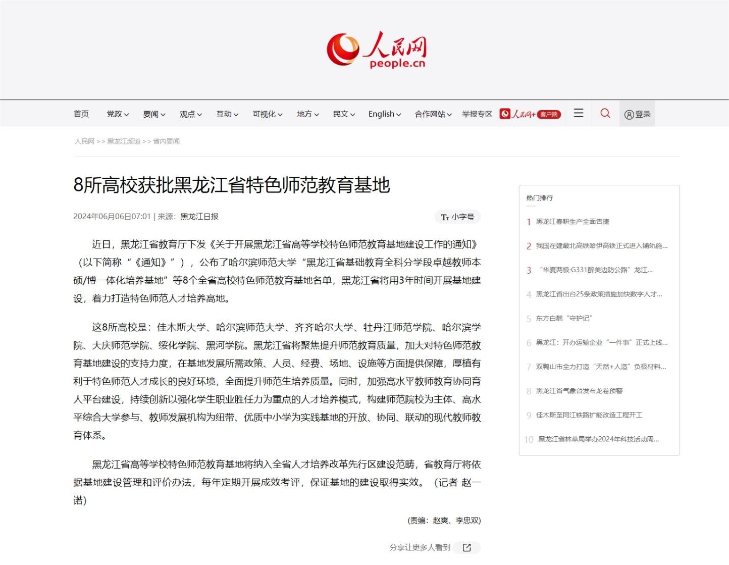 【人民网】8所高校获批黑龙江省特色师范教育基地