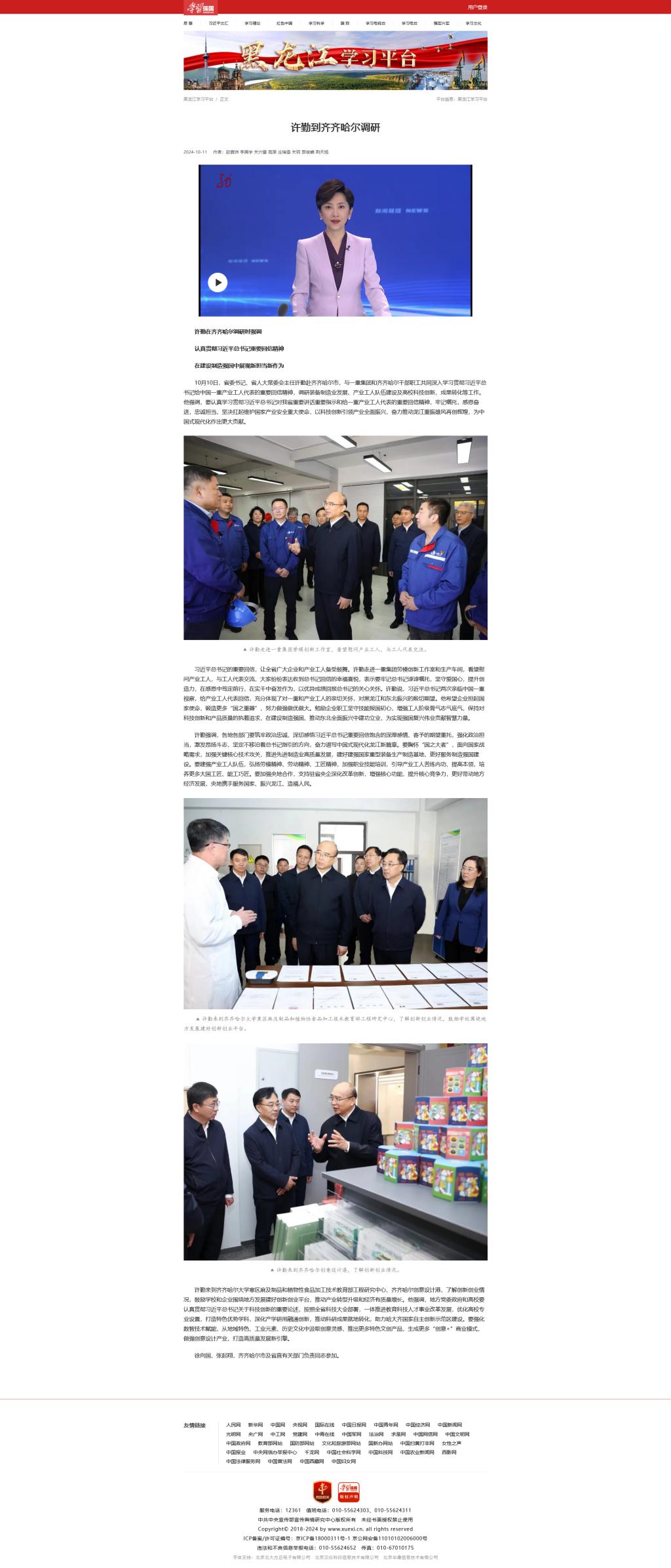 【学习强国】许勤到齐齐哈尔调研