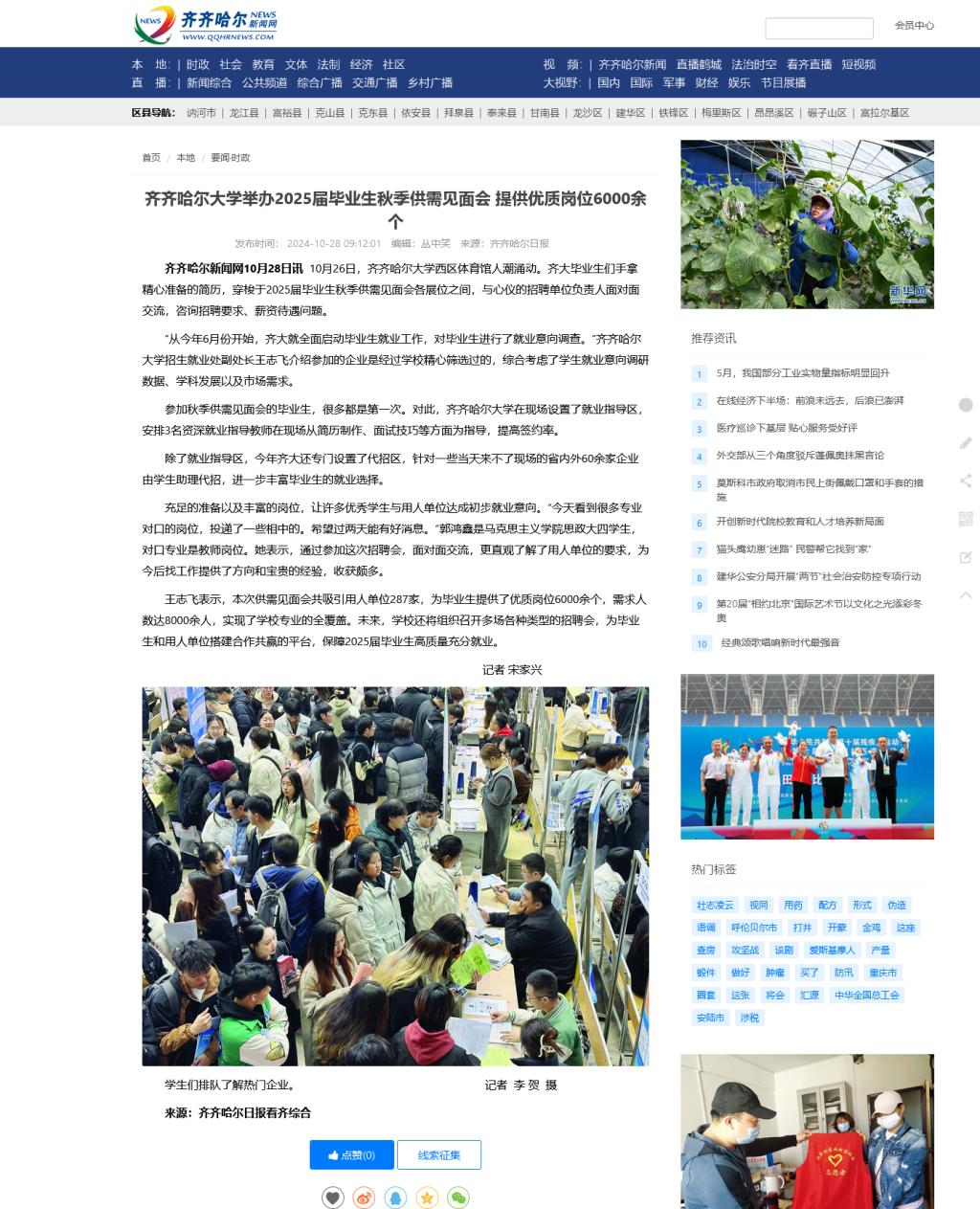 【齐齐哈尔新闻】LETOU国际米兰官网举办2025届毕业生秋季供需见面会提供优质岗位6000余个