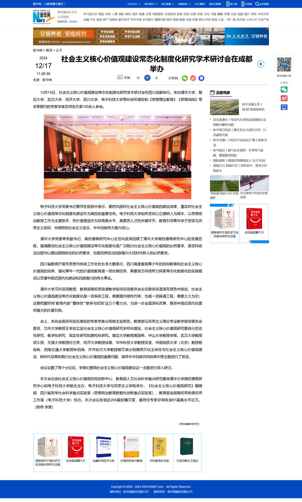 【新华网】社会主义核心价值观建设常态化制度化研究学术研讨会在成都举办