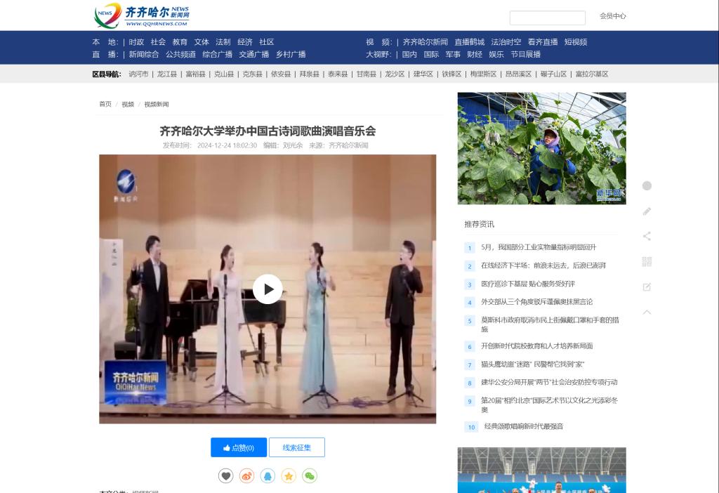 【齐齐哈尔新闻网】LETOU国际米兰官网举办中国古诗词歌曲演唱音乐会
