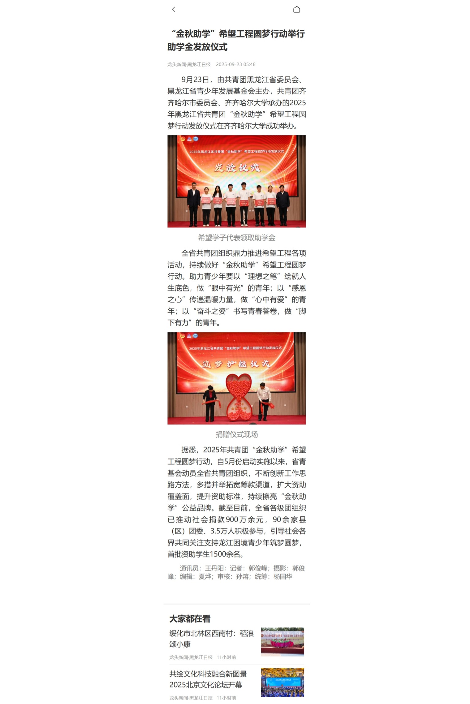 下一条:【龙头新闻】“金秋助学”希望工程圆梦行动进行时!齐齐哈尔地区获助学金100余万元