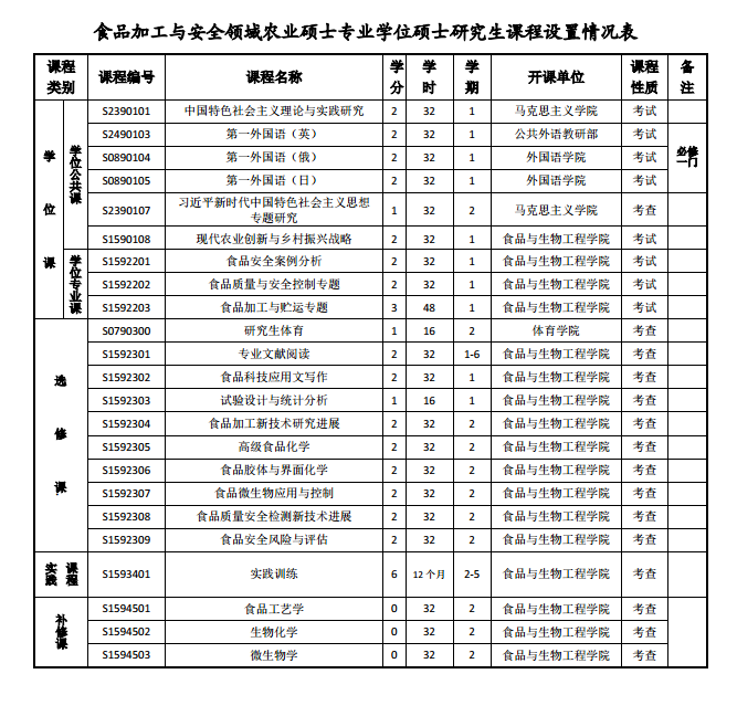 食品加工与安全领域农业硕士专业学位研究生培养方案