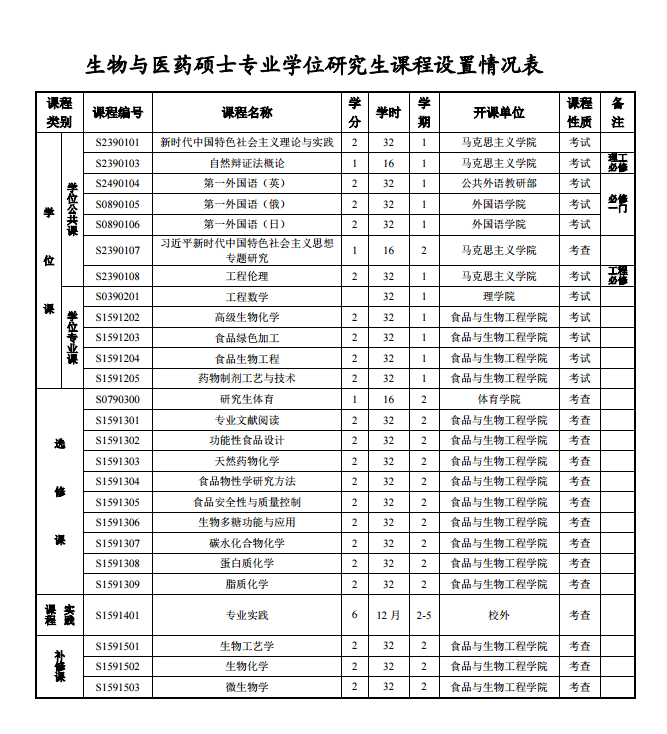 生物与医药类别硕士专业学位研究生培养方案