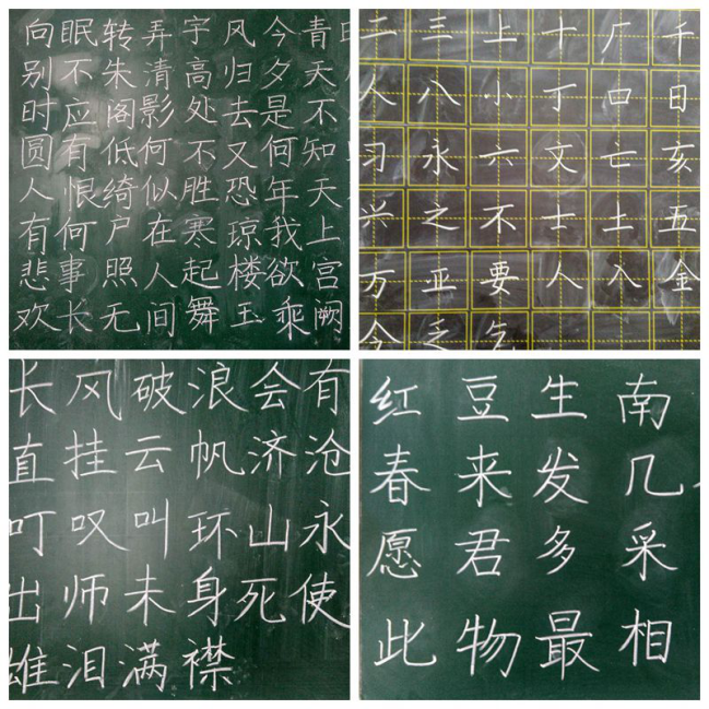 本次比赛分粉笔字组和钢笔字组,参赛选手们纷纷展示了各自书法的表现风格和书写能力。既有一气呵成、笔画遒劲、笔势生动的粉笔字书法,也有错落有致、刚柔并济的钢笔字书法。经过激烈的角逐,粉笔字组的孙佳艺、李想、白小丽,钢笔字组的韩静鑫、陈镜屹、史珊珊分别获得本次比赛各组别的一等奖。本次比赛,为学生搭建一个锻炼自己、展示风采的平台。