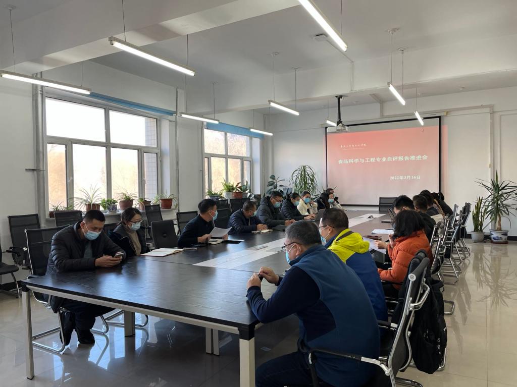 为顺利推进专业认证工作,科学准确定位人才培养目标,优化课程体系,完善人才培养方案,食品科学与工程专业于2022年3月16日上午在7教224会议室召开专业自评报告推进会,会议由食品科学与工程专业主任王岩主持,党委书记邵炳军、院长任健、副院长邓永平、副院长宋春丽、食工系全体教师参加会议。