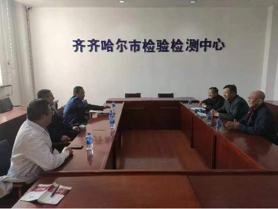 生工2005届校友、齐齐哈尔市市场监督管理局副局长刘韩,齐齐哈尔市检验检测中心党委副书记贾世明,食品88届校友、齐齐哈尔市检验检测中心食品所所长王殿友,2012届校友、市场监督管理局办公室主任宁振鑫参加会谈。